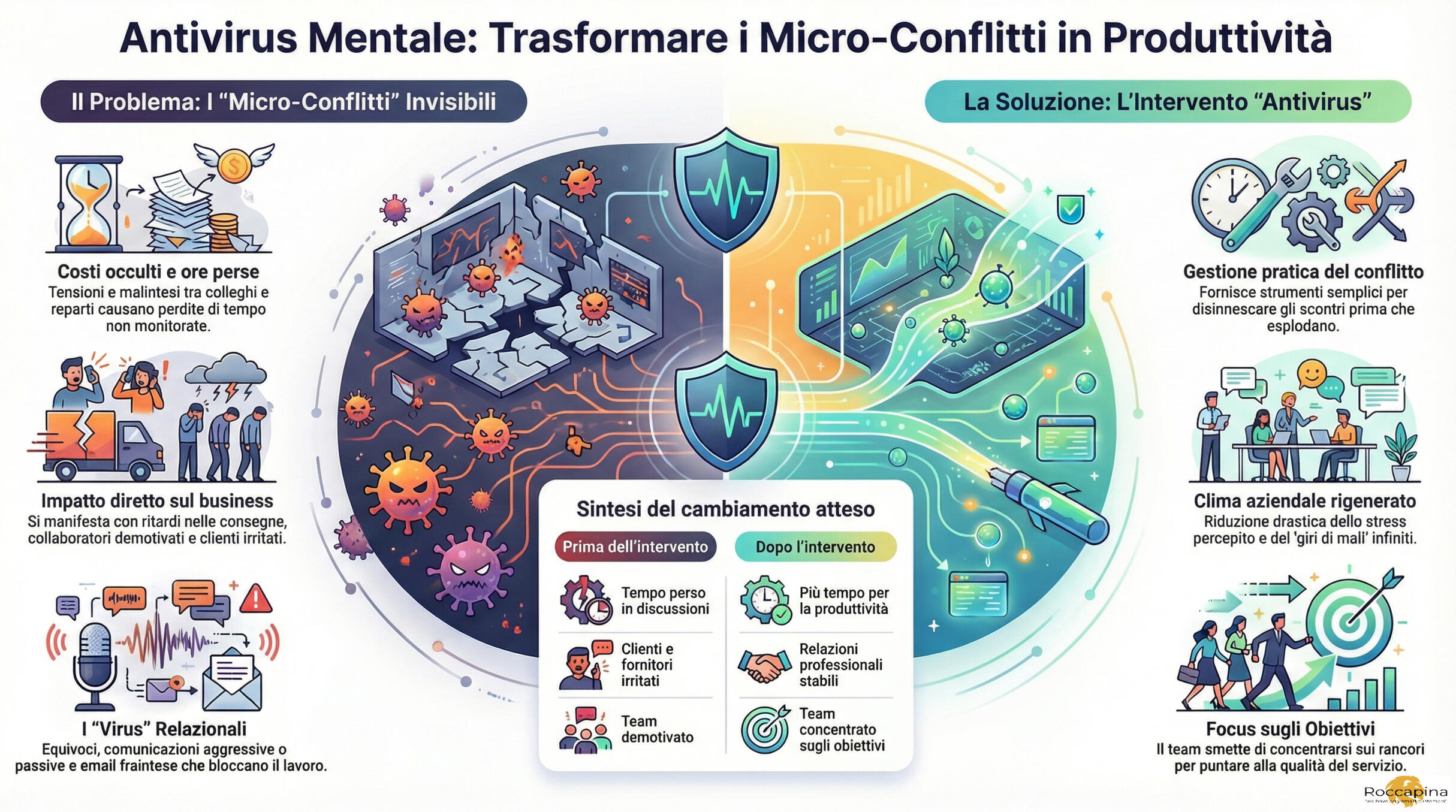 Dedicato ai team che vivono conflitti latenti o aperti e vogliono trasformarli in collaborazione e chiarezza invece che in perdite di tempo ed energia.
